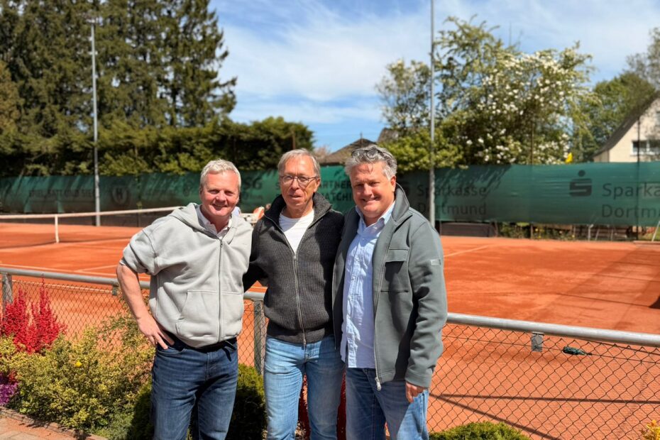 Und der erste Vorsitzende des Stadtsportverbandes, Peter Schubert, besucht die beiden Vorsitzenden, Lutz Gmel (li.) und Lutz Thimm (re.).